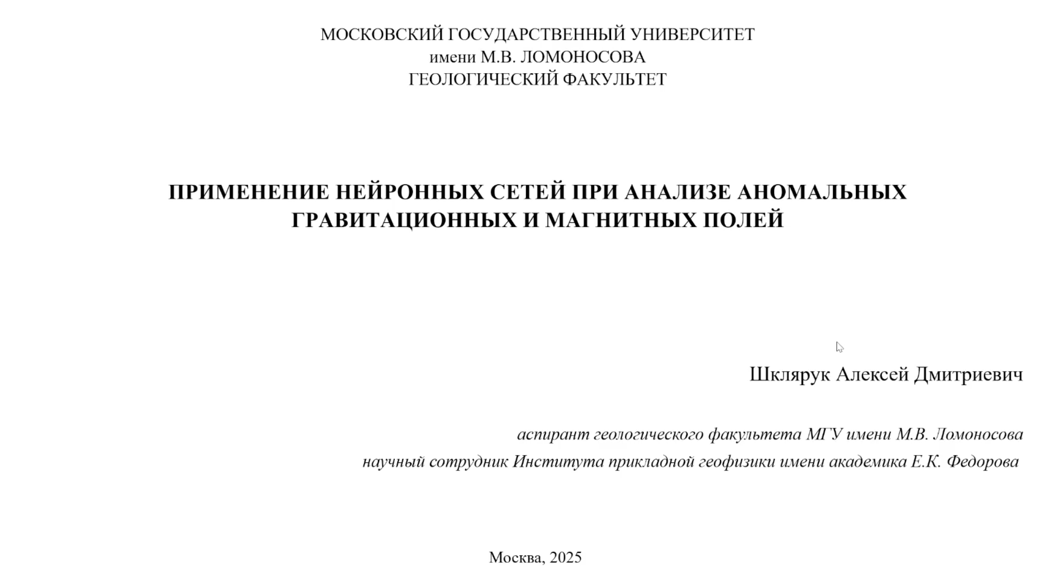 Состоялись выступления научного консультанта – директора ГЦ РАН члена-корреспондента РАН А. А. Соловьёва и рецензента – д.ф.-м.н., профессора В. А. Пилипенко.
